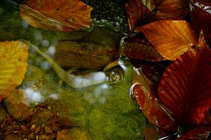 Dusky Salamander peeking out of the water.