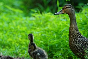 Mallard duck with her two chicks.